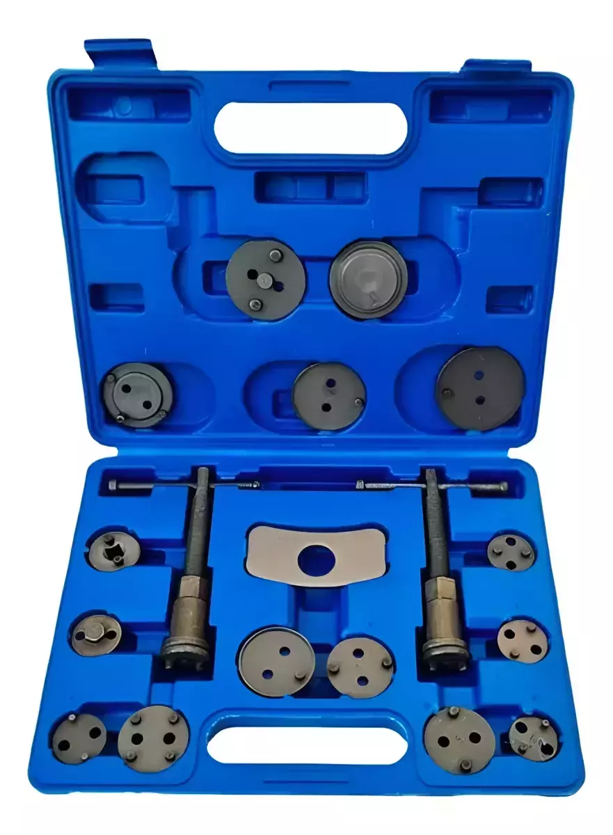 El Extractor de Caliper de Freno Universal Ruhlmann (18 Pzs) es un kit profesional diseñado para rebobinar y comprimir pistones de freno en pinzas de freno de disco, evitando daños en las juntas internas. Gracias a sus adaptadores universales, es compatible con una amplia gama de vehículos europeos, japoneses y americanos.
