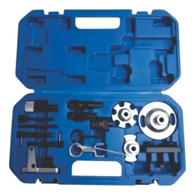 Compatible con sistemas de distribución por cadena y por correa, cumpliendo con las especificaciones técnicas del fabricante. Su diseño robusto y preciso lo convierte en una herramienta esencial para talleres especializados en motores VAG.