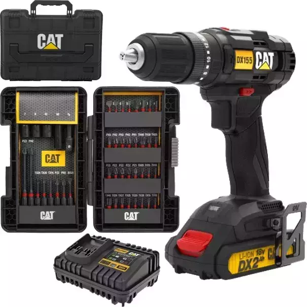 El combo CAT DX155 es la solución completa para quienes buscan potencia, precisión y versatilidad en cada trabajo. Incluye el taladro percutor atornillador inalámbrico DX155 de 18V y un set de 45 puntas de impacto CAT DA01902, ideal para enfrentar cualquier desafío, tanto en bricolaje como en uso profesional.