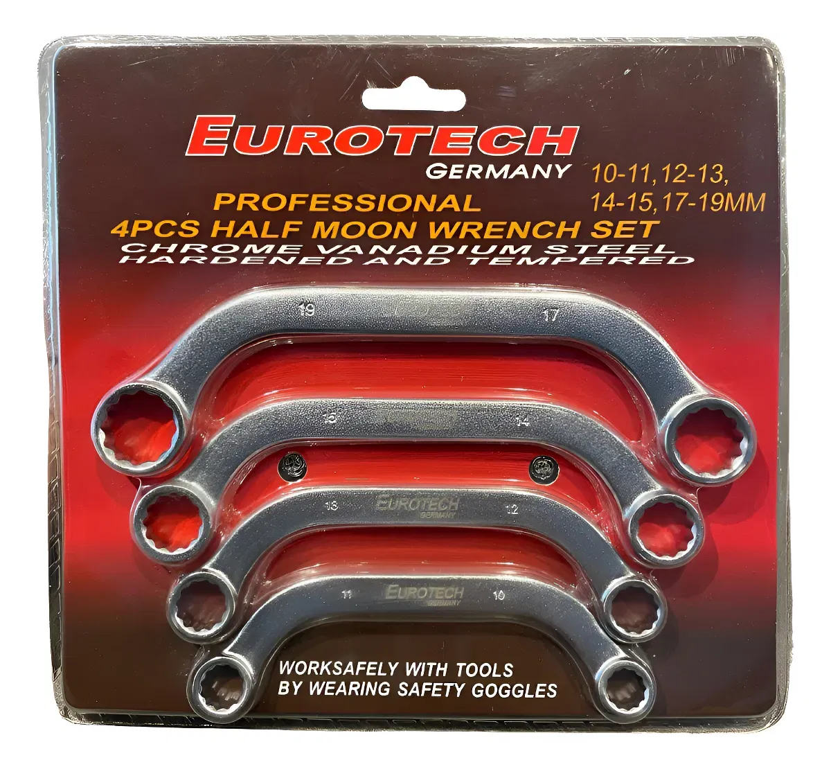 Juego de Llaves Estriadas Curvas Tipo C Eurotech 2650 | 4 Piezas 10 a 19 mm
