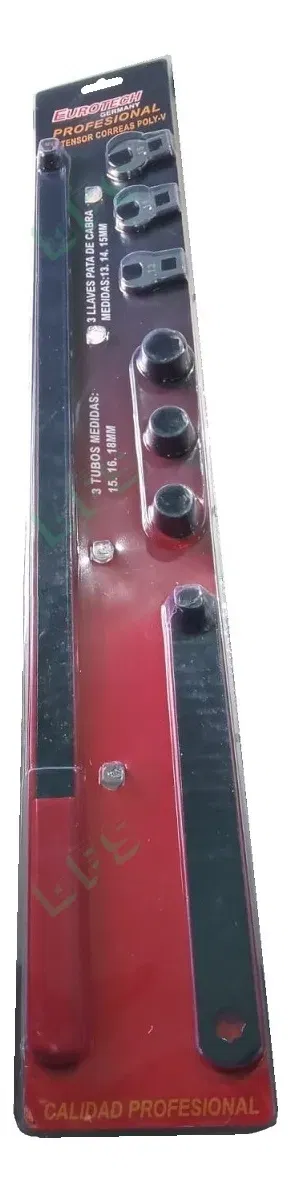 Este Kit para Tensar Correas Poly-V está pensado para trabajar en motores modernos donde el espacio es un infierno y necesitás herramientas que realmente entren. Fabricado en acero, combina palancas largas y cortas, más tubos y patas de cabra en medidas clave para liberar, tensar o montar correas Poly-V sin romperte las manos.