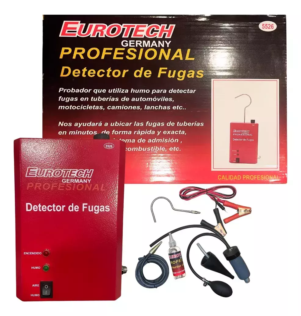 El Detector de Fugas Automotriz por Humo Eurotech S1000 es una máquina profesional diseñada para localizar fugas de aire, gases o aceite en vehículos de forma rápida y precisa. Con funcionamiento a 12V y generador de humo seguro a base de aceite de bebé, permite realizar diagnósticos completos en sistemas de escape, admisión, inyección, turbo, motor, aceite, EVAP, EGR, refrigeración, tanque de combustible y más.