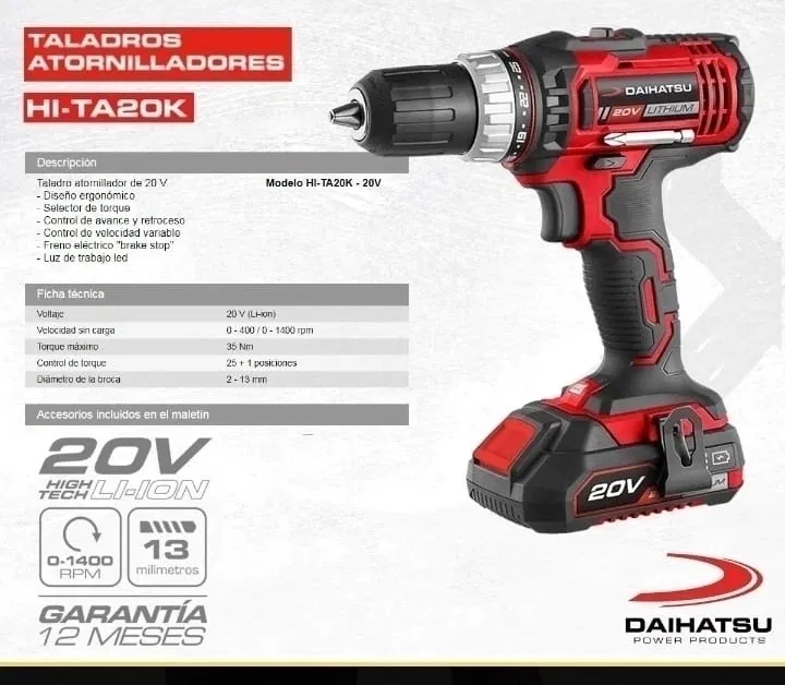 El Taladro Atornillador 20V 13mm es una herramienta práctica y versátil, ideal para trabajos de montaje, reparaciones y proyectos de bricolaje.