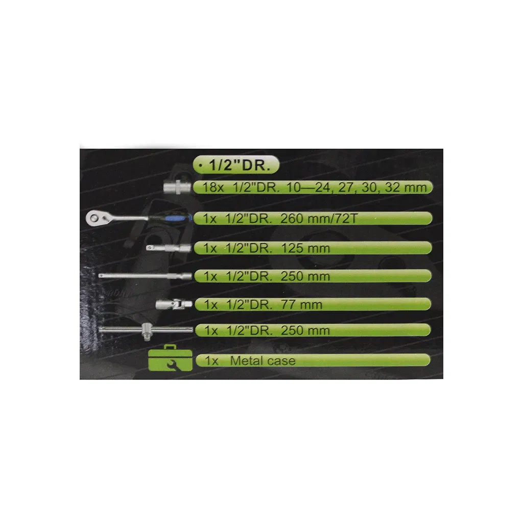 El Juego de Tubos Riddle Pro 24 Pcs 1/2” está fabricado en acero cromo vanadio, garantizando resistencia, durabilidad y precisión en cada trabajo. Es un kit esencial para talleres mecánicos, gomerías y aficionados que buscan un juego completo y de alta calidad para trabajos exigentes.