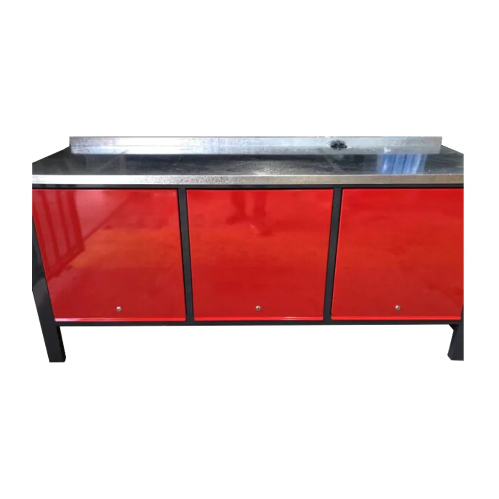 Mesada en chapa galvanizada de 1.25 mm, resistente a golpes, grasas y corrosión.