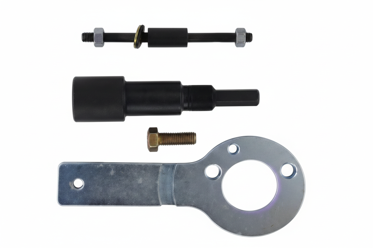 Kit profesional de calado y sincronización para motores Fiat JTD 1.6 y 2.0, diseñado para bloquear y posicionar correctamente los componentes de distribución durante tareas de mantenimiento o reparación. Asegura el punto exacto del motor y un armado conforme a especificación.