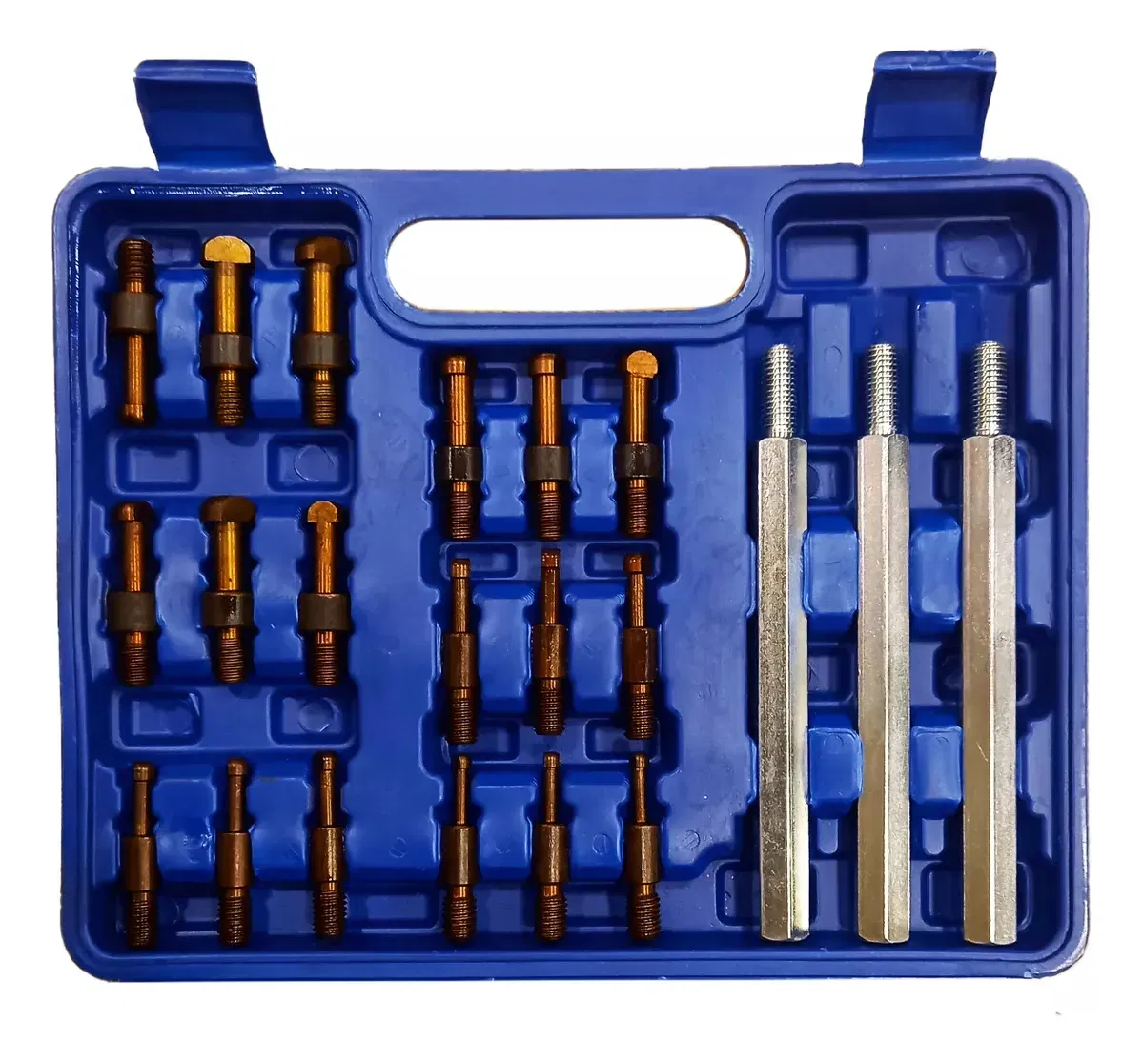 Kit profesional de 21 piezas para extracción de rulemanes internos (bolitas), fabricado en acero S2 con tratamiento térmico, lo que asegura alta durabilidad y resistencia a trabajos exigentes.