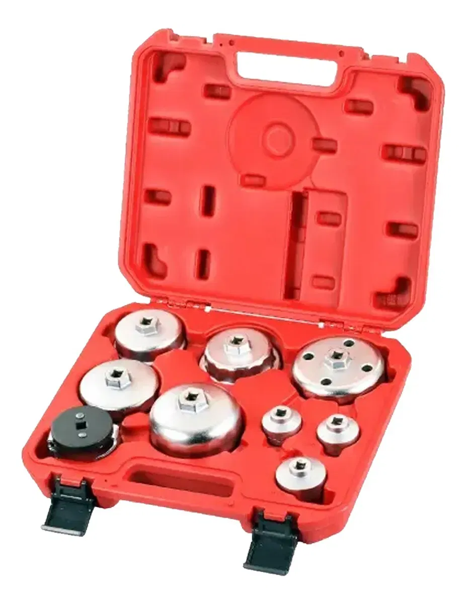 Juego profesional de 9 piezas diseñado para la extracción de filtros de aceite en vehículos de alta gama.