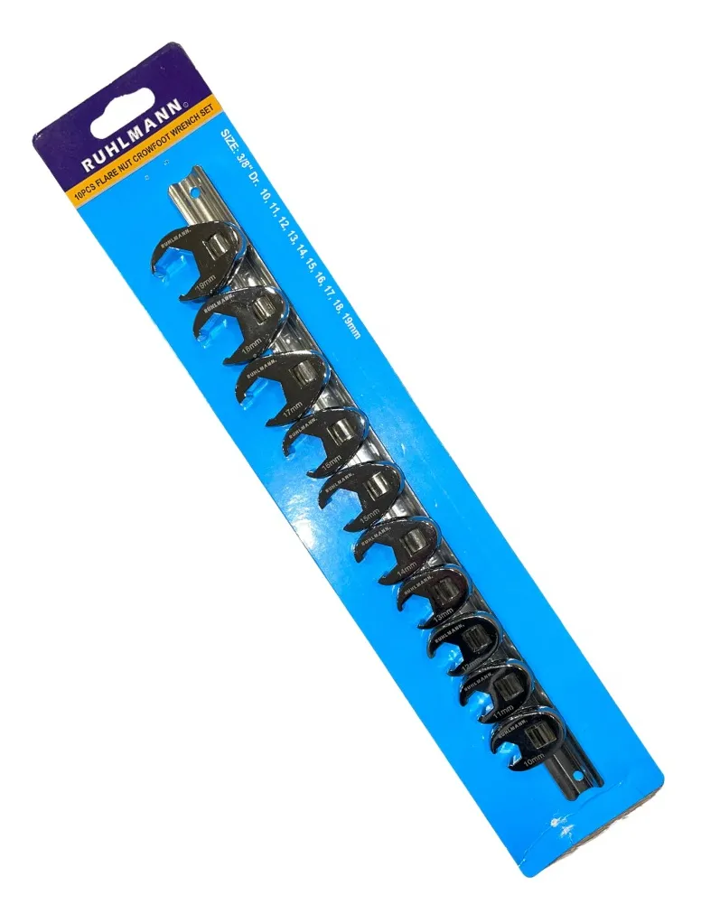 El Kit de Llaves Pata de Cabra Abiertas Ruhlmann RU43140 es un set esencial para trabajos en sistemas Poly-V, tensores y zonas de difícil acceso donde una llave común no entra. Con encastre 3/8" y un rango completo de 10 a 19 mm, cubre las medidas más utilizadas en mecánica automotriz.
