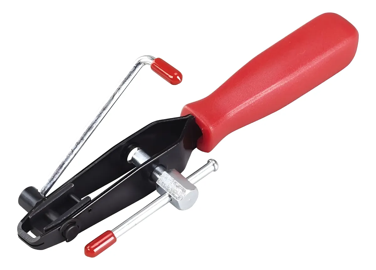 Pinza profesional diseñada para prensar zunchos metálicos en fuelles de homocinética, asegurando un cierre firme y duradero.