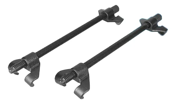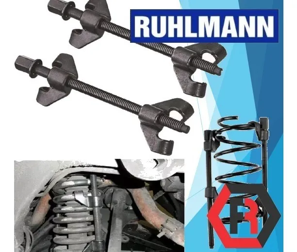 Prensa para espirales de 370 mm, diseñada para trabajar en espacios reducidos debajo del paso de rueda, ofreciendo seguridad y control en tareas de suspensión.